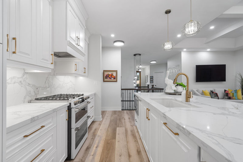 Our team provided complete design leadership throughout the process—from early space planning and material selection to final styling and installation. The renovation included custom-made cabinetry in the kitchen, bathrooms, and laundry room, each piece tailored for both beauty and function. Bespoke finishes, refined details, and curated textures created a layered sense of luxury throughout.